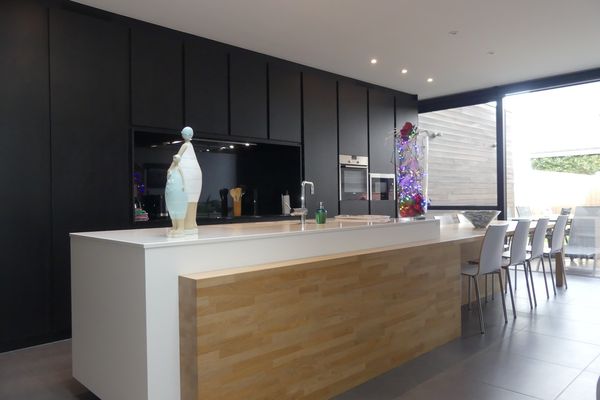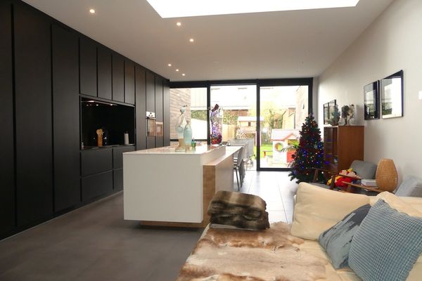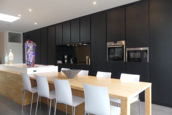 Uitgerust met inductiekookplaat, dampkap, vaatwas, microgolf, oven, koelkast, dubbele spoelbak