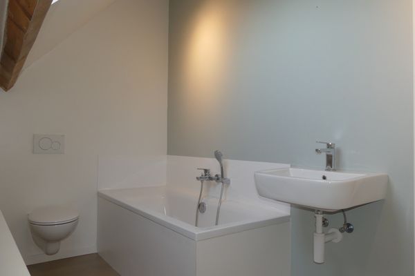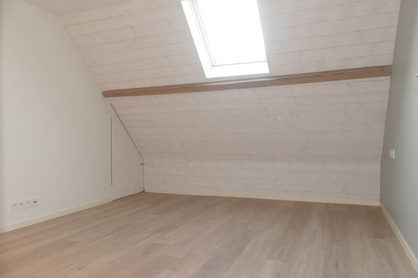 Op het 1ste verdiep vindt u een ruime slaapkamer en een 2de ruimte die kan dienstig zijn als bureau of dressing. Vanuit de 2de ruimte bevindt zich de trap om naar het zolderverdiep te gaan.