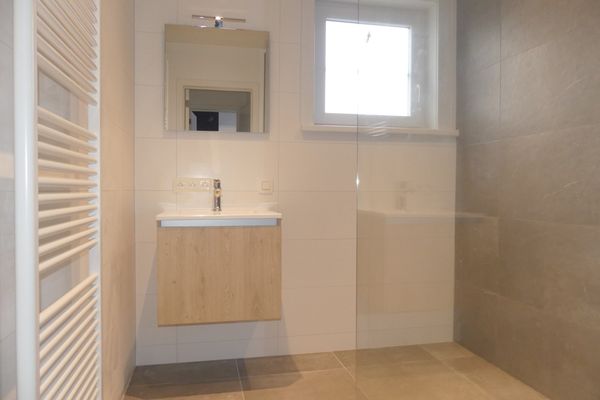 De woning is ingedeeld als volgt: inkom, leefruimte, volledig geïnstalleerde keuken, vervolgens is er nog een apart toilet en badkamer uitgerust met inloopdouche en lavabo.