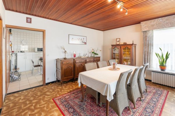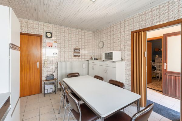 De leefkeuken is in goede staat en volledig geïnstalleerd, en aansluitend is er een koele berging waar de aansluiting voor was-en droogmachine aanwezig is. Verder op het gelijkvloers vindt u de toegang tot de kelder, 2 slaapkamers en badkamer. Op het eerste verdiep bevinden er zich nog 2 ruime slaapkamers en 2 (zolder)bergingen.